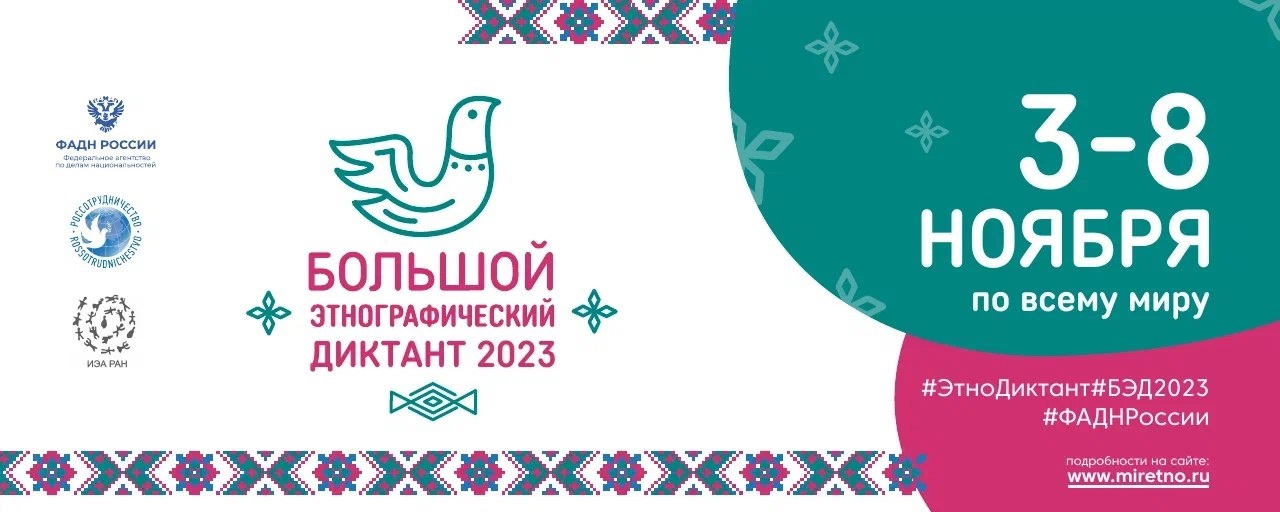 С 1 по 8 ноября 2025 г. во всех субъектах Российской Федерации и зарубежных странах пройдет Юбилейная X Всероссийская просветительская акция «Большой этнографический диктант».